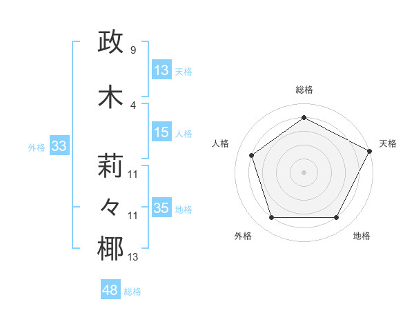 政木 莉々椰さんを姓名の画数から五運を鑑定