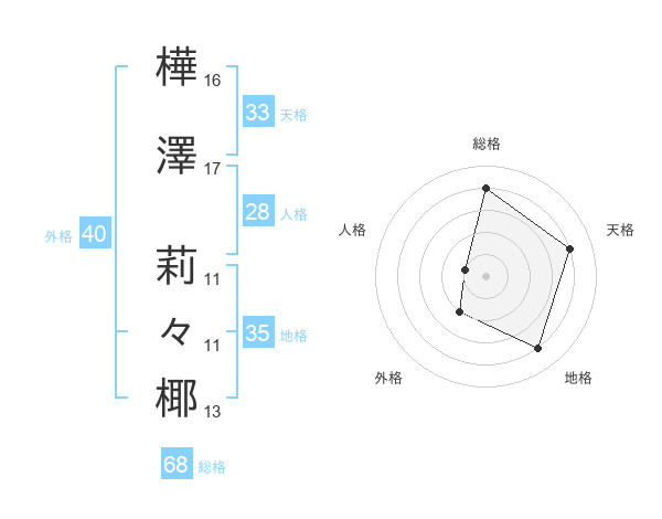 樺澤 莉々椰さんの総格は68画の4点!