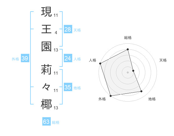 現王園 莉々椰さんの総格は63画の4点!