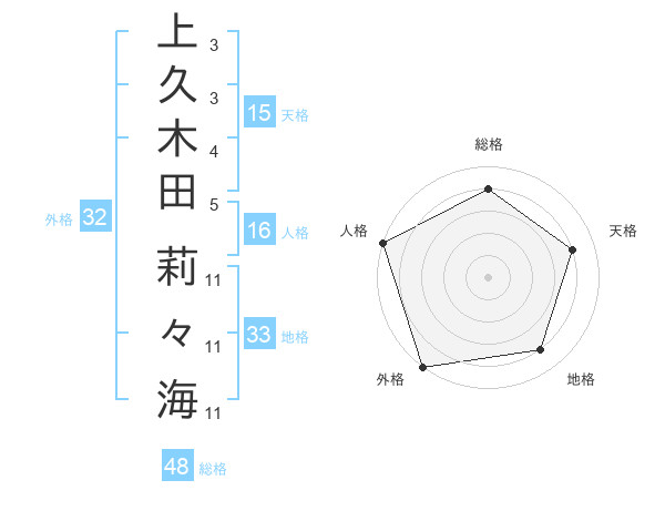 上久木田 莉々海さんを姓名の画数から五運を鑑定