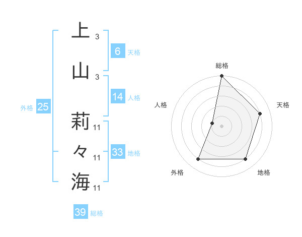 上山 莉々海さんを姓名の画数から五運を鑑定