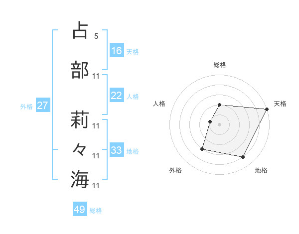 占部 莉々海さんを姓名の画数から五運を鑑定