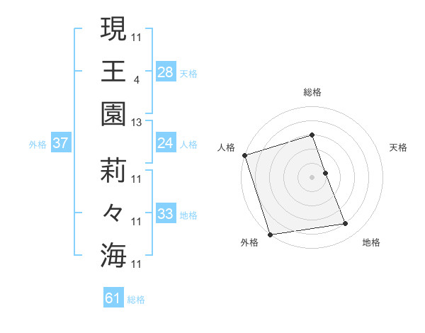 現王園 莉々海さんを姓名の画数から五運を鑑定