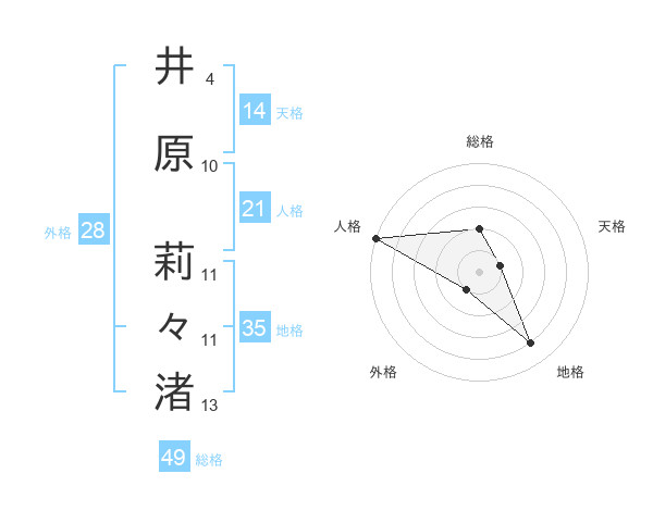 井原 莉々渚さんを姓名の画数から五運を鑑定