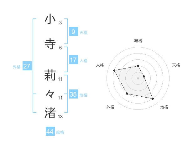 小寺 莉々渚さんの総格は44画の2点!