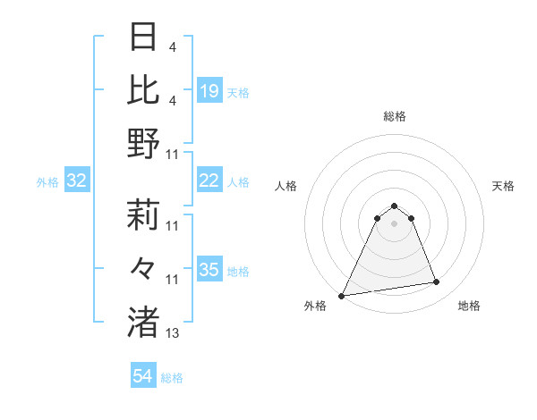 日比野 莉々渚さんを姓名の画数から五運を鑑定