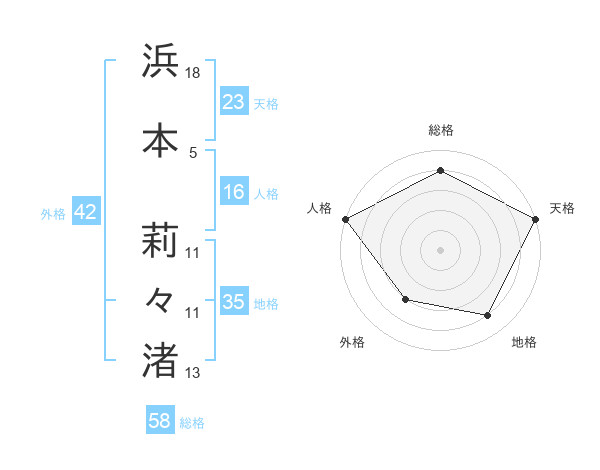浜本 莉々渚さんを姓名の画数から五運を鑑定