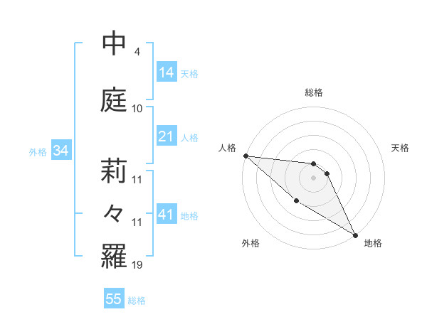 中庭 莉々羅さんの総格は55画の1点!