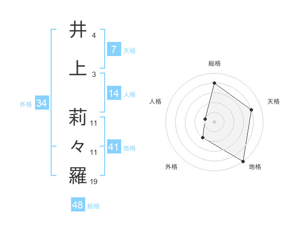 井上 莉々羅さんを姓名の画数から五運を鑑定