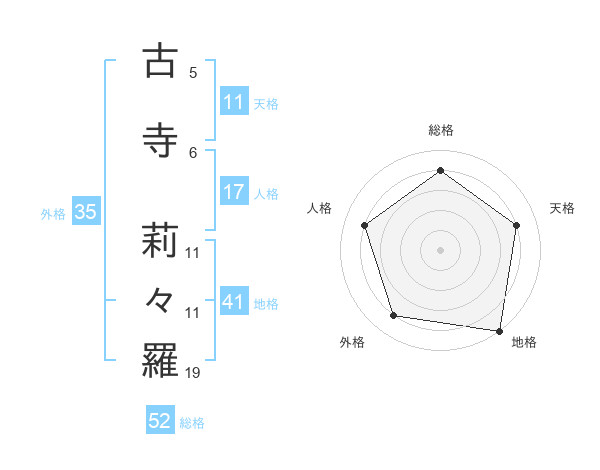 古寺 莉々羅さんの総格は52画の4点!
