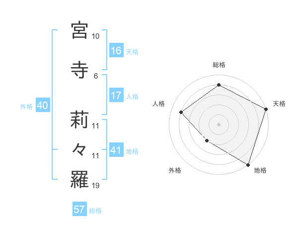 宮寺 莉々羅さんを姓名の画数から五運を鑑定