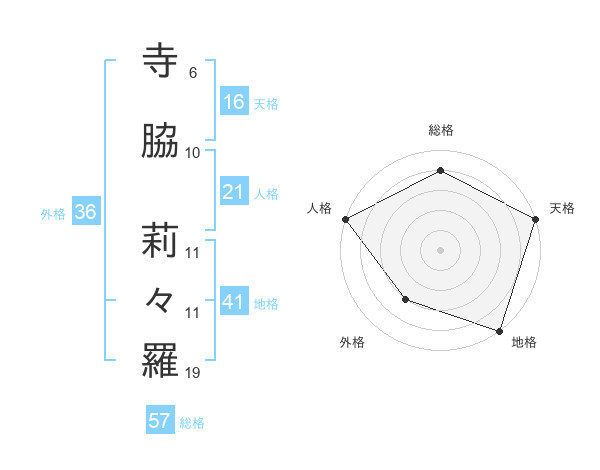 寺脇 莉々羅さんの天格は16画の5点!
