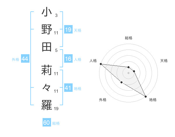 小野田 莉々羅さんの総格は60画の1点!