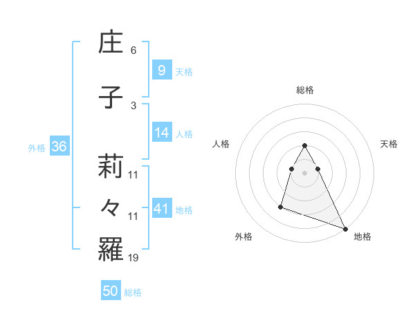 庄子 莉々羅さんを姓名の画数から五運を鑑定