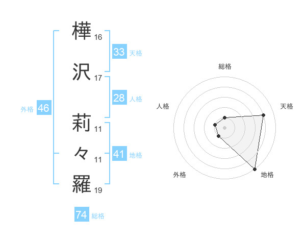 樺沢 莉々羅さんを姓名の画数から五運を鑑定
