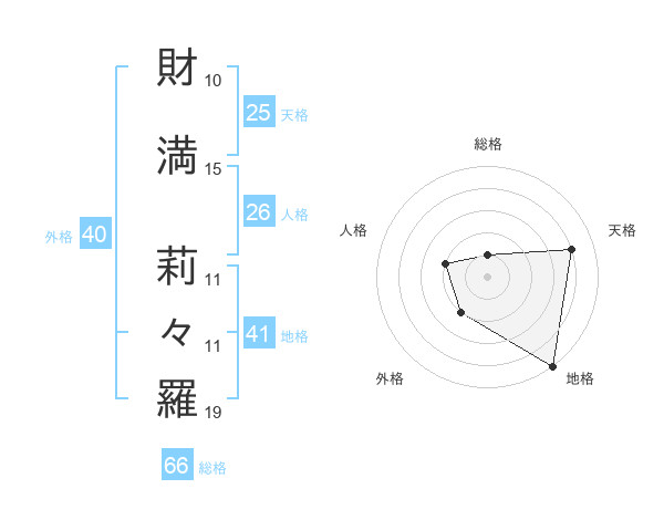 財満 莉々羅さんを姓名の画数から五運を鑑定
