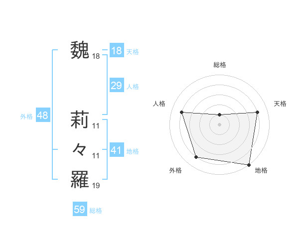 魏 莉々羅さんの総格は59画の1点!