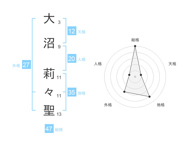 大沼 莉々聖さんの総格は47画の5点!