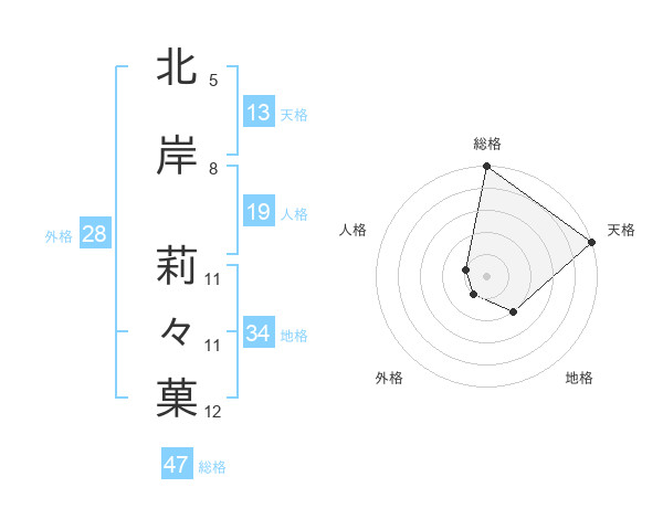 北岸 莉々菓さんの総格は47画の5点!