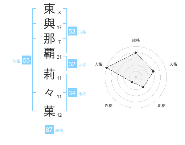 東與那覇 莉々菓さんを姓名の画数から五運を鑑定