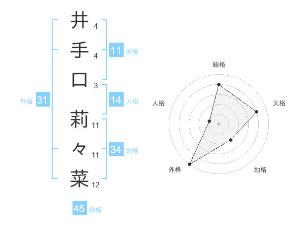 井手口 莉々菜さんを姓名の画数から五運を鑑定