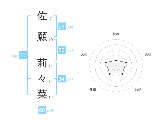 佐願 莉々菜さんを姓名の画数から五運を鑑定