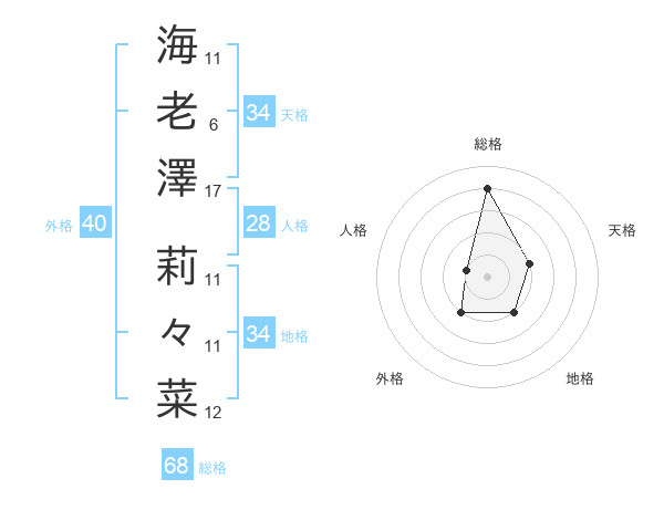 海老澤 莉々菜さんを姓名の画数から五運を鑑定
