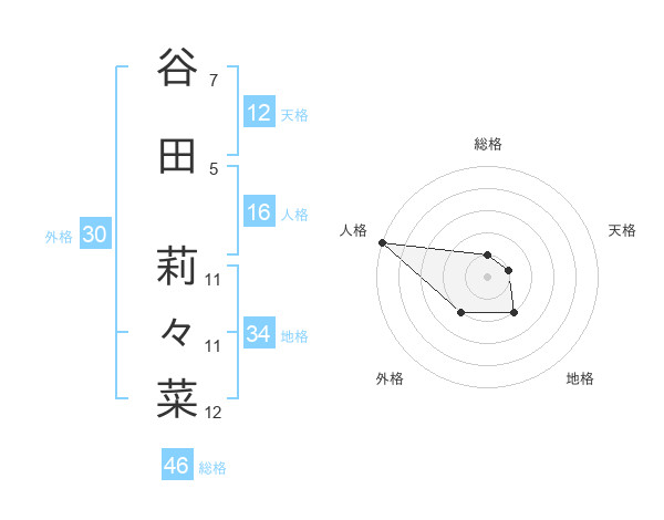 谷田 莉々菜さんを姓名の画数から五運を鑑定