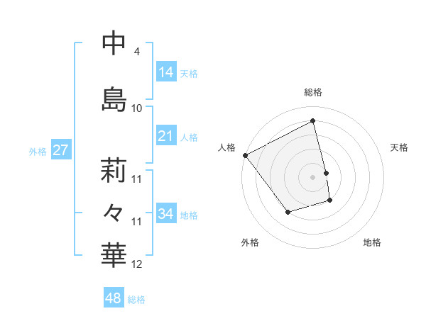 中島 莉々華さんの総格は48画の4点!