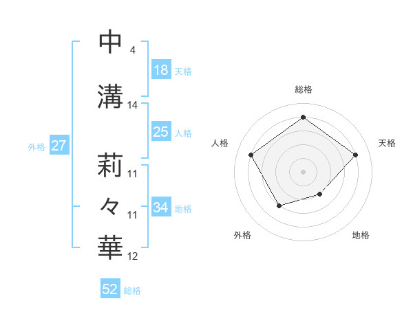 中溝 莉々華さんの総格は52画の4点!