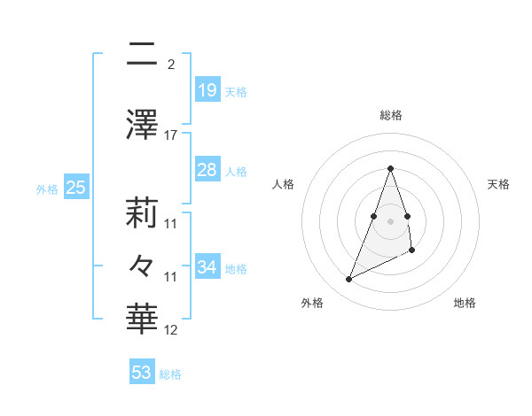 二澤 莉々華さんを姓名の画数から五運を鑑定