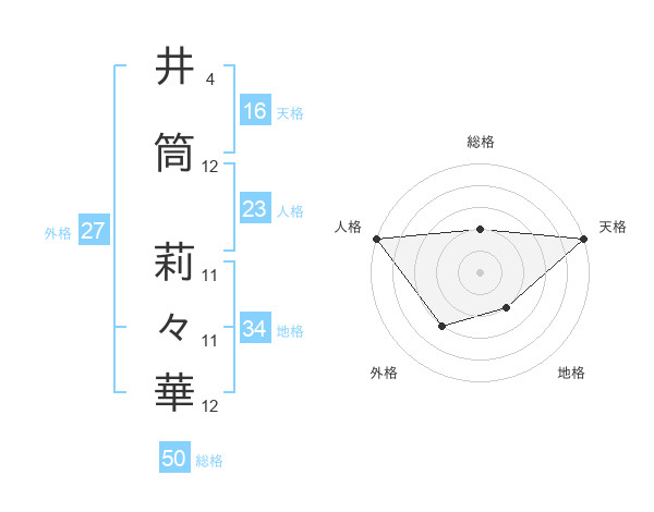 井筒 莉々華さんの総格は50画の2点!