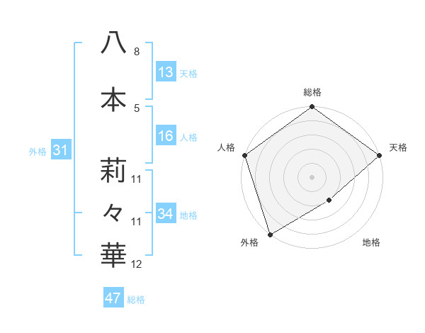 八本 莉々華さんを姓名の画数から五運を鑑定