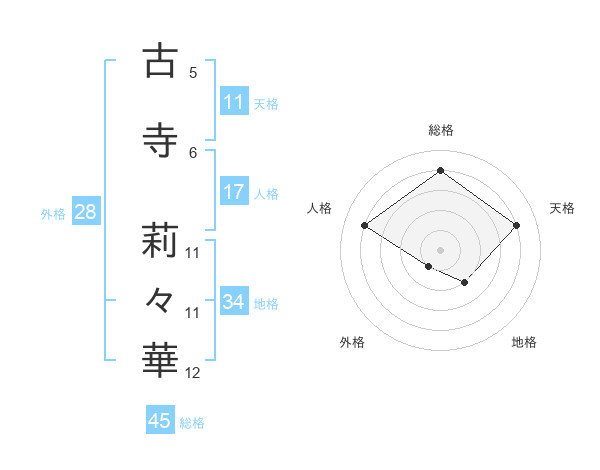 古寺 莉々華さんの総格は45画の4点!