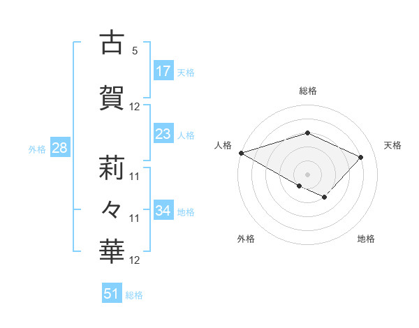 古賀 莉々華さんを姓名の画数から五運を鑑定