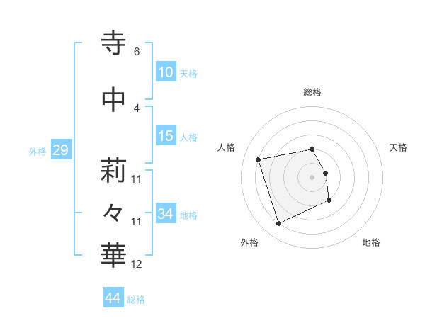 寺中 莉々華さんの総格は44画の2点!