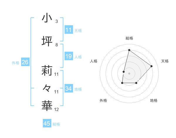 小坪 莉々華さんの総格は45画の4点!