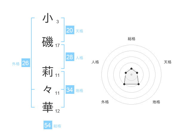 小磯 莉々華さんの総格は54画の1点!