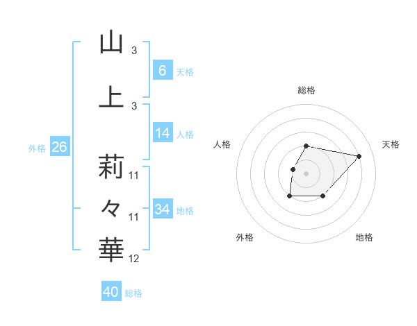 山上 莉々華さんを姓名の画数から五運を鑑定