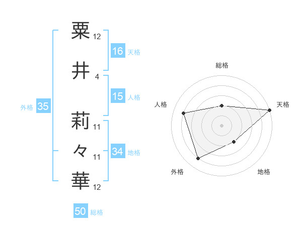 粟井 莉々華さんの総格は50画の2点!