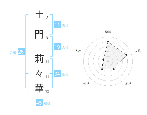 土門 莉々華さんを姓名の画数から五運を鑑定