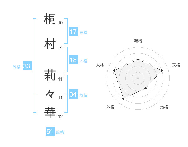 桐村 莉々華さんを姓名の画数から五運を鑑定
