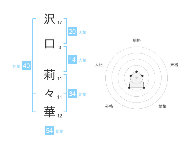 沢口 莉々華さんを姓名の画数から五運を鑑定