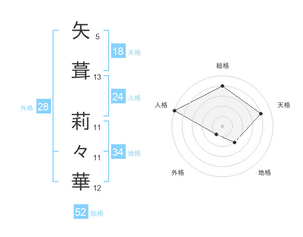 矢葺 莉々華さんを姓名の画数から五運を鑑定