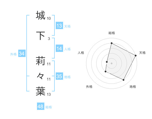 城下 莉々葉さんを姓名の画数から五運を鑑定