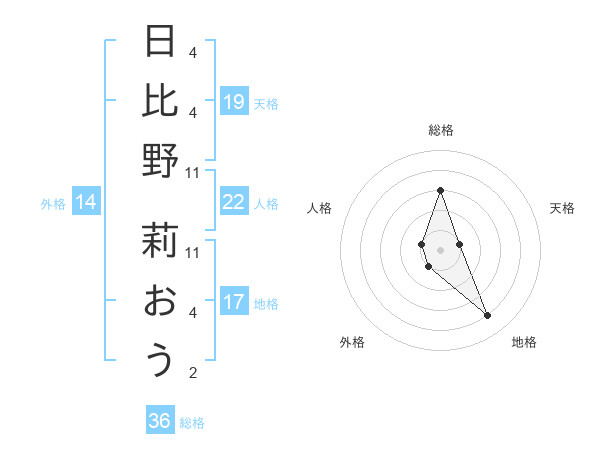 日比野 莉おうさんの外格は14画の1点!