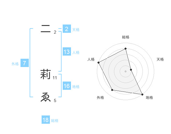 二 莉ゑさんを姓名の画数から五運を鑑定