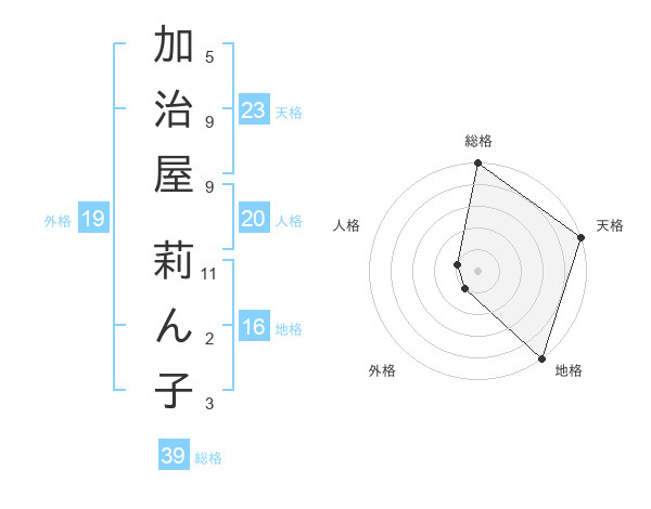 加治屋 莉ん子さんを姓名の画数から五運を鑑定