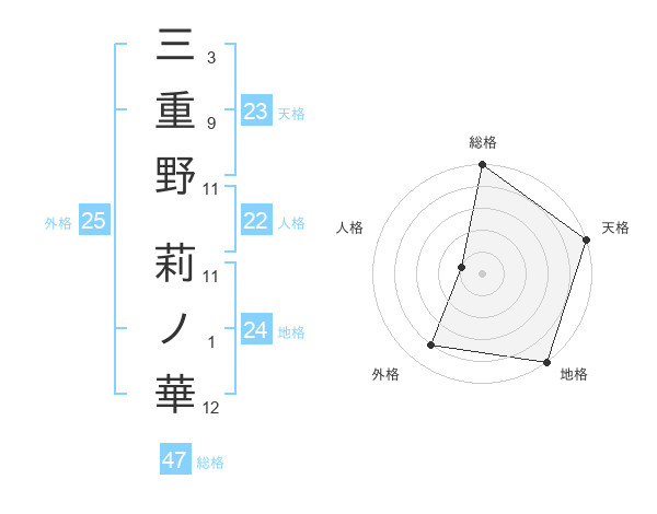 三重野 莉ノ華さんを姓名の画数から五運を鑑定