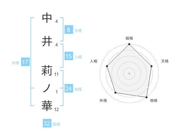 中井 莉ノ華さんを姓名の画数から五運を鑑定
